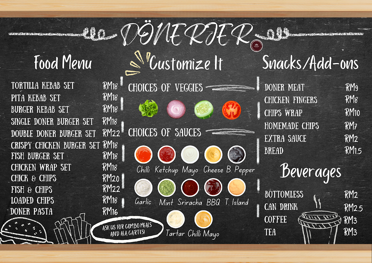 Welcome to Dönerjer, a delightful doner kebab restaurant nestled in the vibrant Kampung Batu Tujuh, Klang. This culinary gem offers a mouthwatering menu that showcases the rich flavors of Turkish cuisine. Its signature dish, the Double Doner Burger Set, features two juicy beef patties, fresh veggies, and delightful sauces, paired with homemade chips for MyR 31.40.